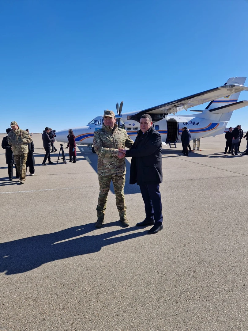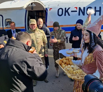 Slavnostní předání letounu se konalo za účasti nejvyšších představitelů skupiny OMNIPOL včetně viceprezidenta pro obchod Artema Movsesyana i kazachstánského ministra pro mimořádné události generálmajora Čingise Arinova.
