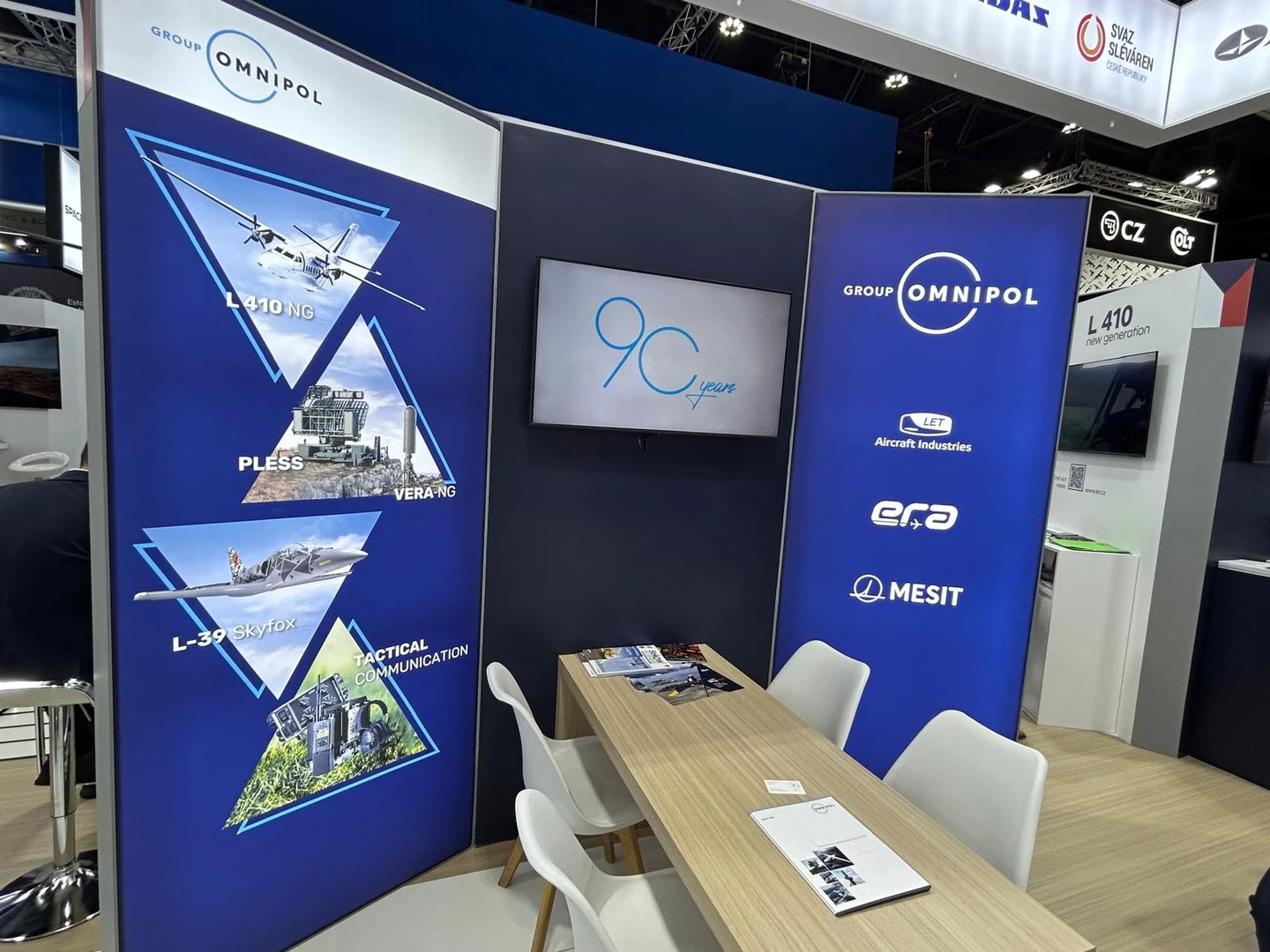 Na společném stránku českých firem se budeme prezentovat spolu s našimi společnostmi Aircraft Industries, ERA a MESIT a s partnerskou společností Aero Vodochody. Představíme tak široké portfolio našich hi-tech produktů se zaměřením na letouny L 410 NG, L-39 Skyfox, pasivní sledovací systémy VERA-NG a PLESS a systémy taktické komunikace.